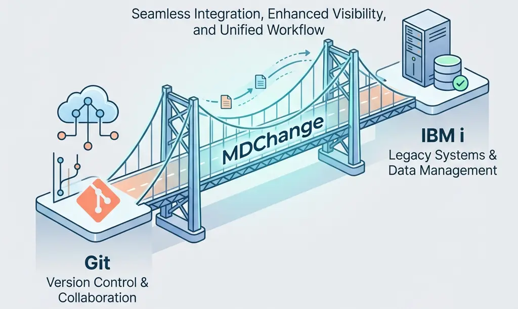 MDChange avoids both Git constraints and legacy limits by introducing an intelligent orchestration layer. Organizations no longer face a false choice between legacy IBM i workflows and modern DevOps.